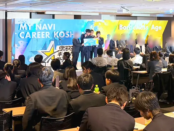 2026年2月15日(日)に東京のマイナビPLACE(歌舞伎座タワー)で開催された第12回 マイナビキャリア甲子園準決勝大会において、本校の高校2年生男子4名で結成されたチーム「糖質上等」が、ロッテ様の代表チームとして選出されました。